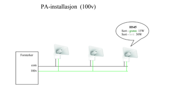 Høyttalere koples i parallell i hver sone. Hver sone må ha egen kabel/kurs.